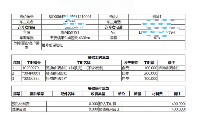 不到两个月就追尾了,还是挺难受的,不过好在缤果S的维修费用还是挺低的,一个面的钣金+油漆也只要400,售后服务也挺不错