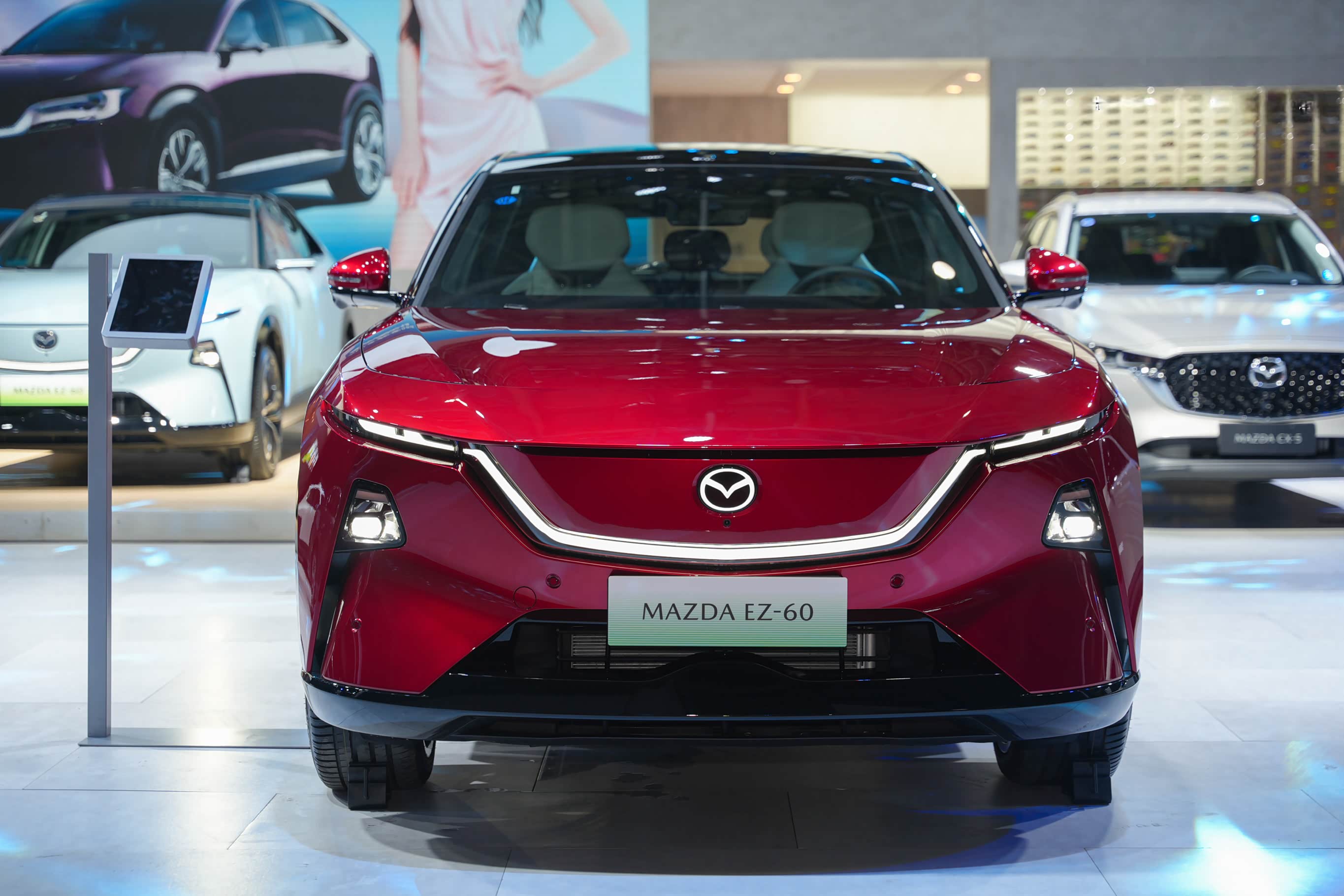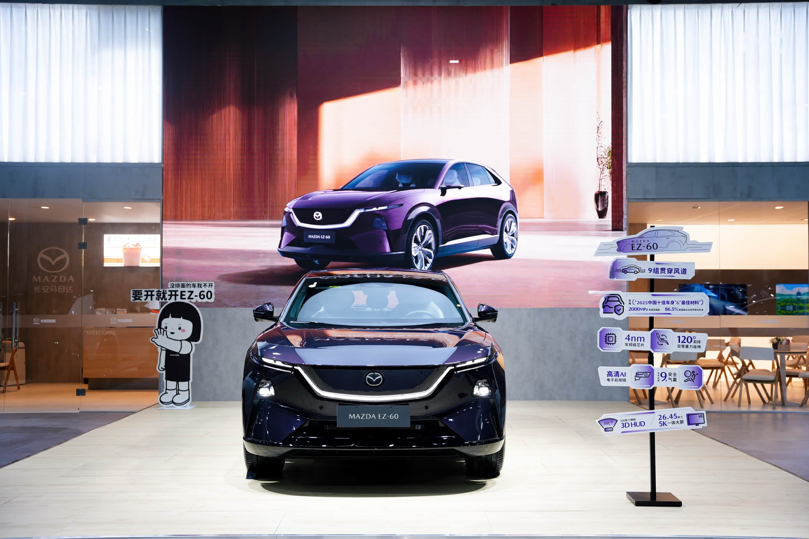 EZ-60前脸采用马自达品牌家族式设计元素,“立体光雕标志之翼” 灯带深度达 60mm,内置72颗高亮度灯珠,夜晚点亮时璀璨夺目,如同水晶般通透立体,带来独一无二的车辆辨识度。#长安马自达