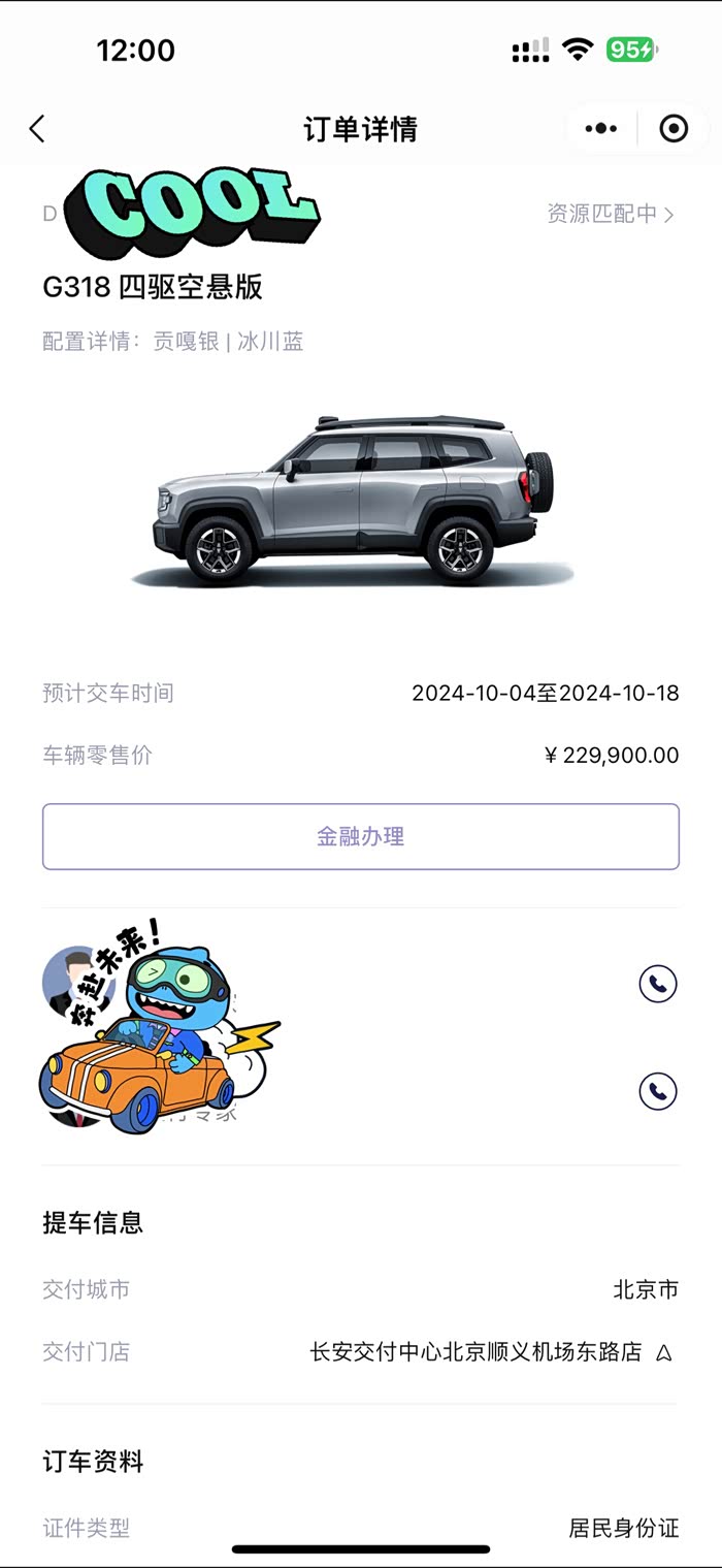 这一等又是天荒地老,23日匹配资源成功,25号生产成功,28号发运成功。在国庆第一天我和家人去山东旅游中街道车到北京了,4号上班就能提车。出都出来了先玩吧。