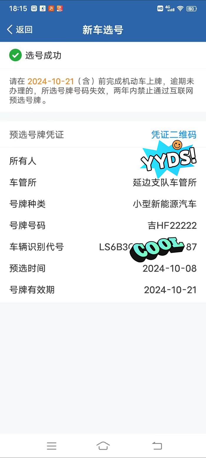 第二天一早排队验车,报税(免税证明就可以了),申领号牌提前预选了,留地址等邮寄。