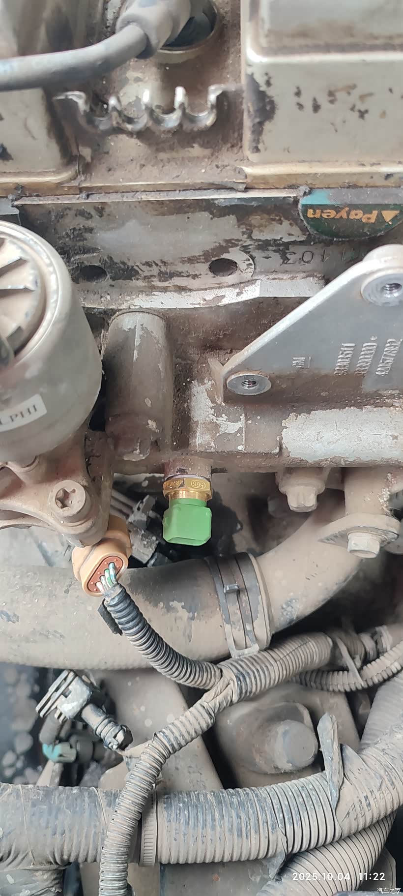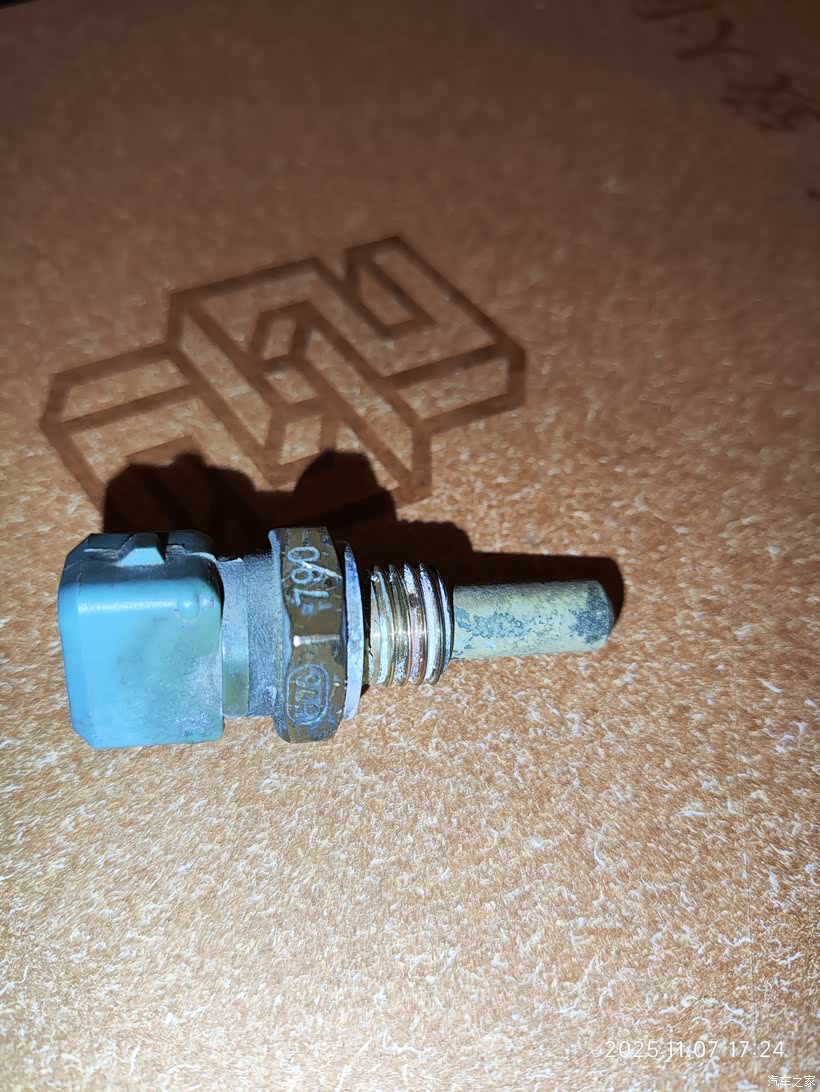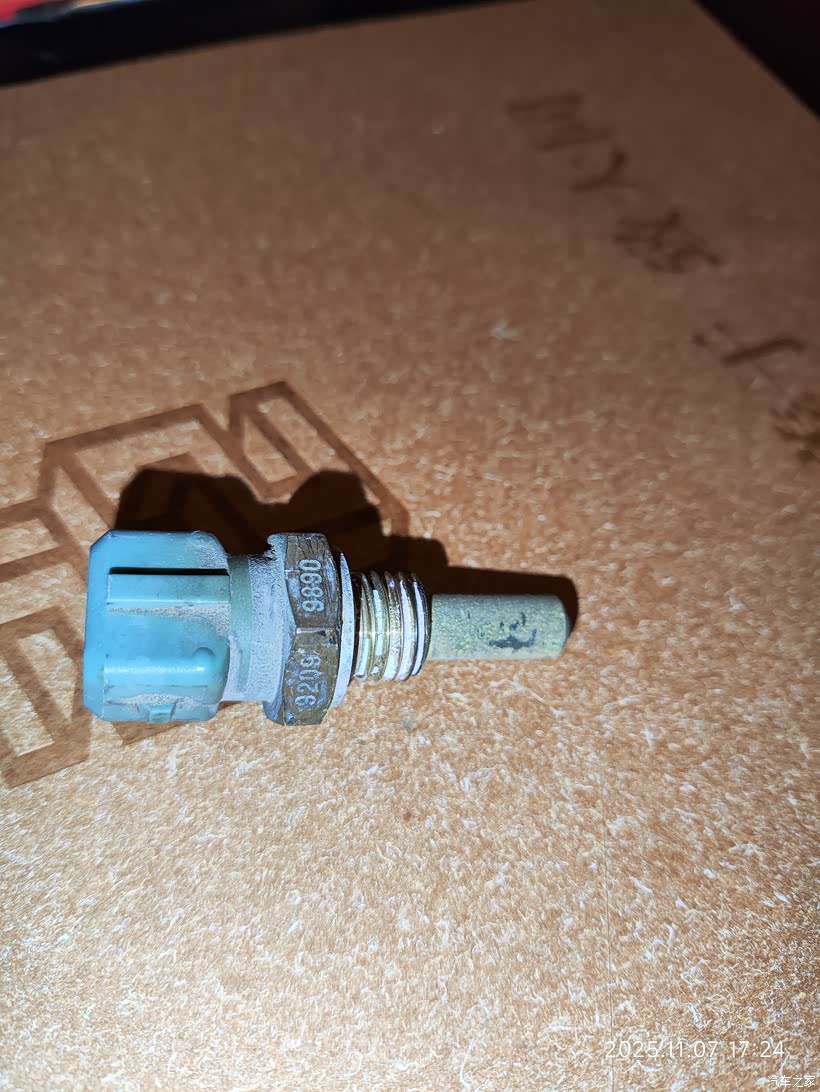 就这个小零件坏了,水温传感器。数值不准导致喷油异常,电子扇异常启动。