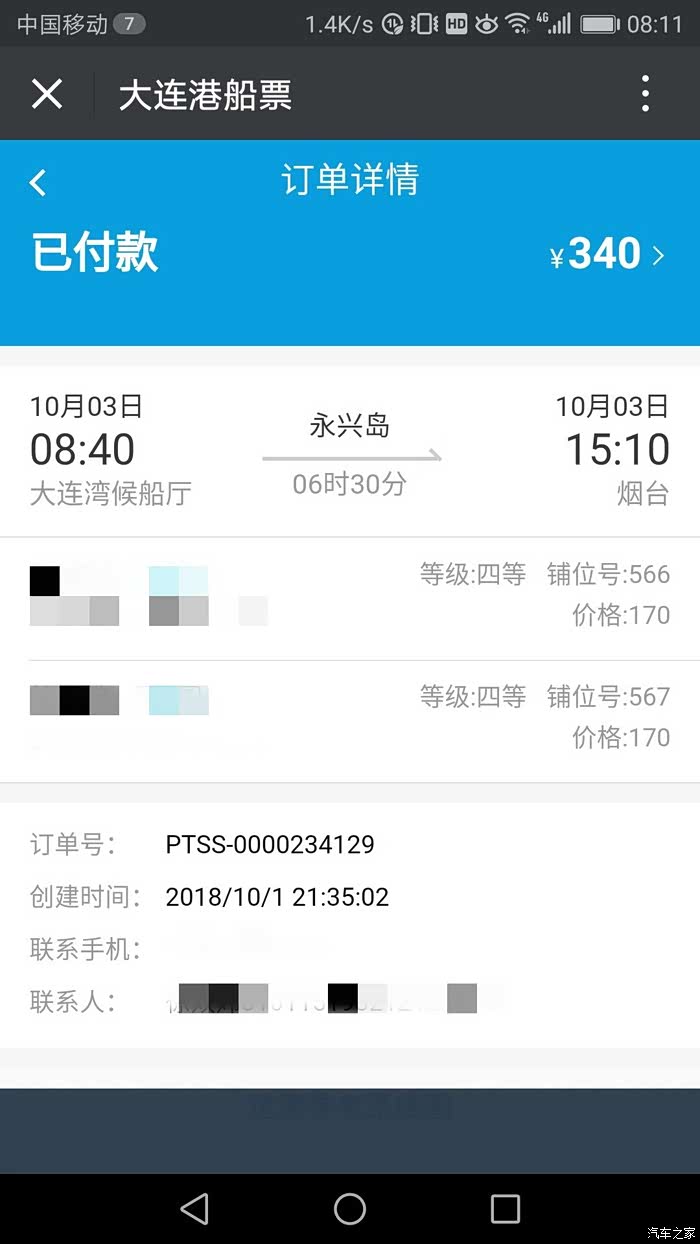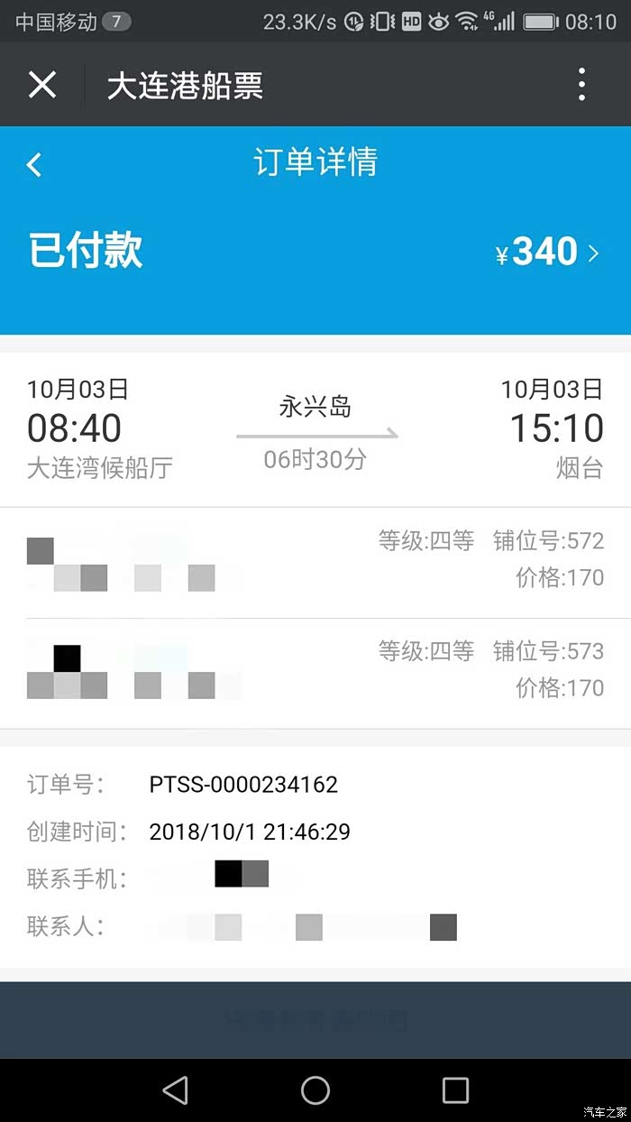 2018/10/3/ 大连 至 乳山 船舱