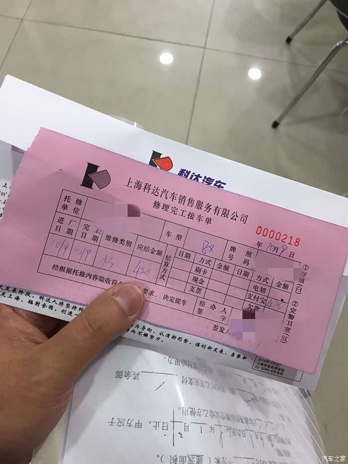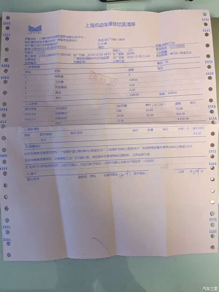 【修车总计费用】420元,