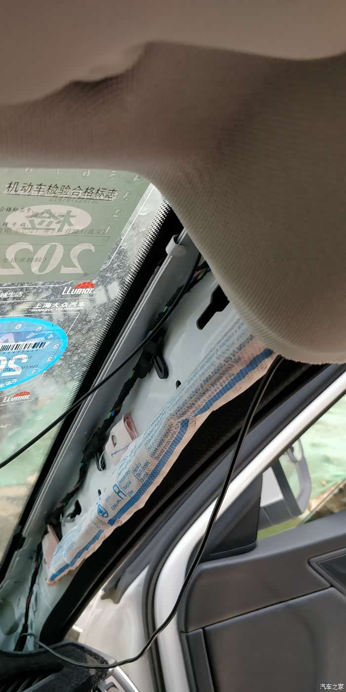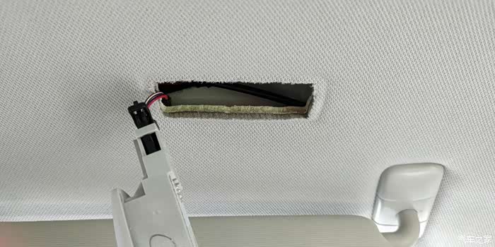 然后从中控中间穿过去铁丝到右边 把GPS天线和麦克风延长线拉过来 GPS吸在A柱 怕不保险用3M双面胶固定