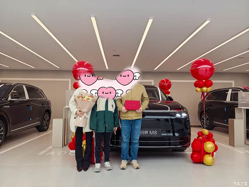 (交车的前夜,带着一家人给小奥拍了几张合影,还和我们的小8同框合影留念)