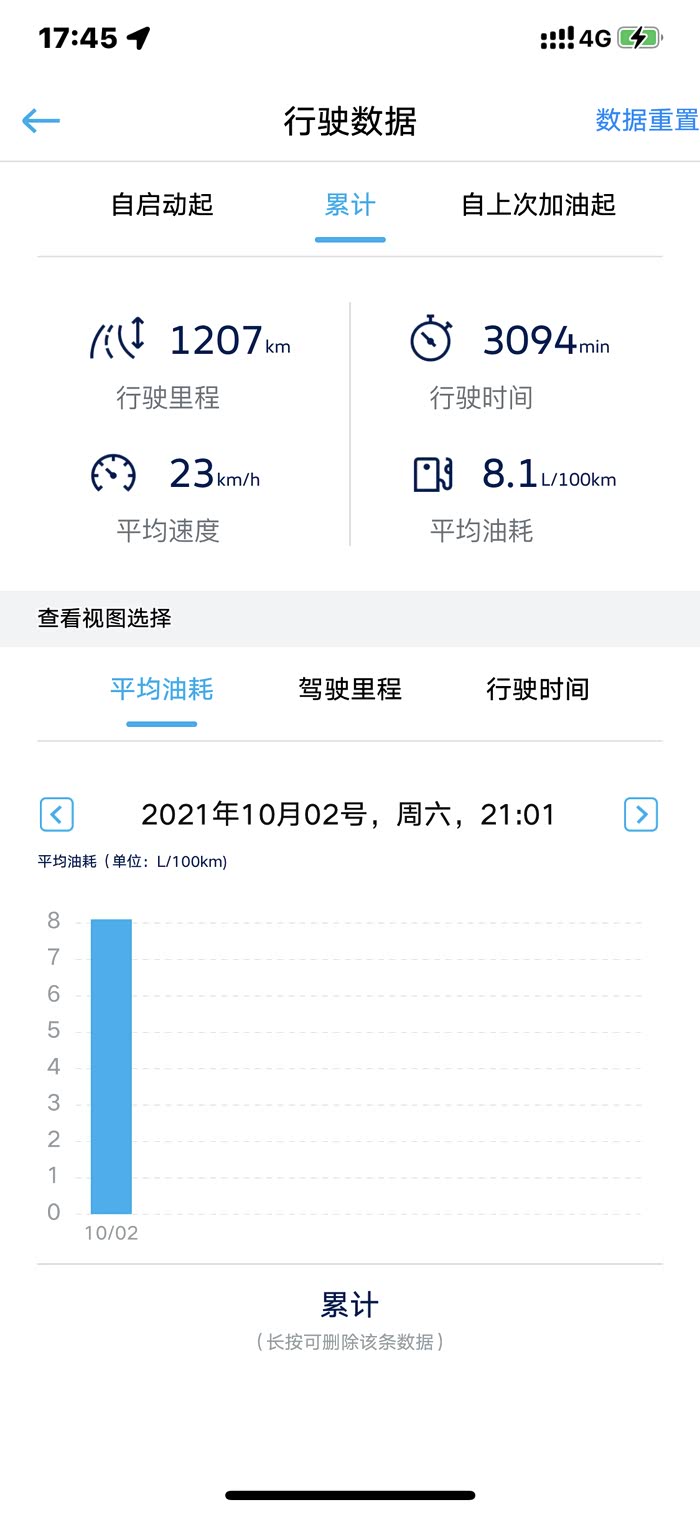 附图是8月和10月跑同一条国道的油耗,速度不快但是基本匀速。
