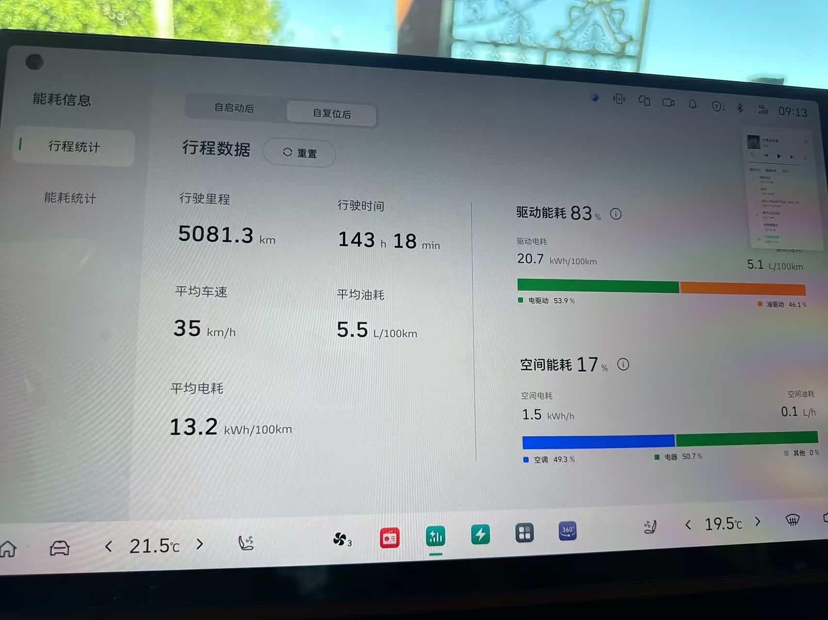既然是新能源MPV肯定是多用电少用油,我也不例外。通过这段时间的用电出行,感觉它的电池电量比较耐用,就以我在市内出行用纯电模式来说,正常使用空调座椅通风按摩等功能,百公里电耗在27度左右,满电续航150公里左右是可以的。如果路况再好一点不堵车续航160公里也OK,续航真心不虚标。但插混MPV必须得雨露均沾,所以最近我一直都在用油出行,根据表显显示油耗也不高始终没有超过6L油,相比一般普通家用车来说还要偏省一些,最主要的是我这台车是七座MPV,能达到这个油耗真心低呀!