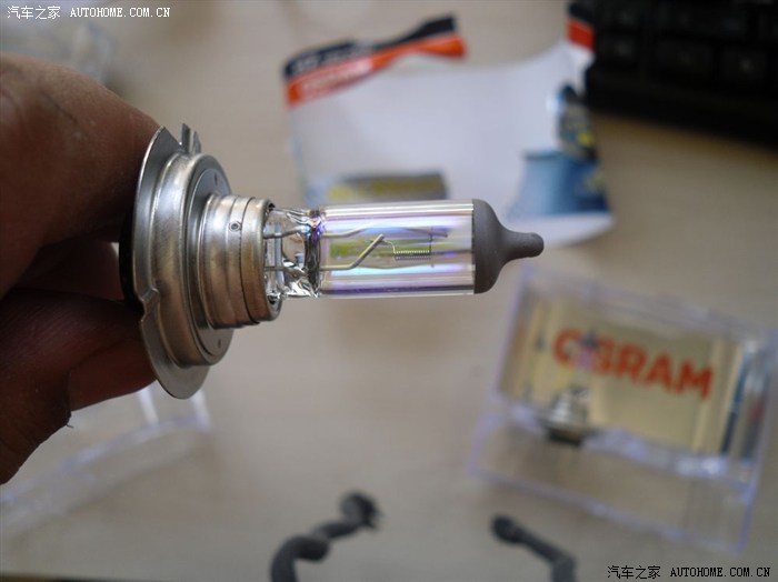 侧看H7灯泡,有种淡淡的金黄色