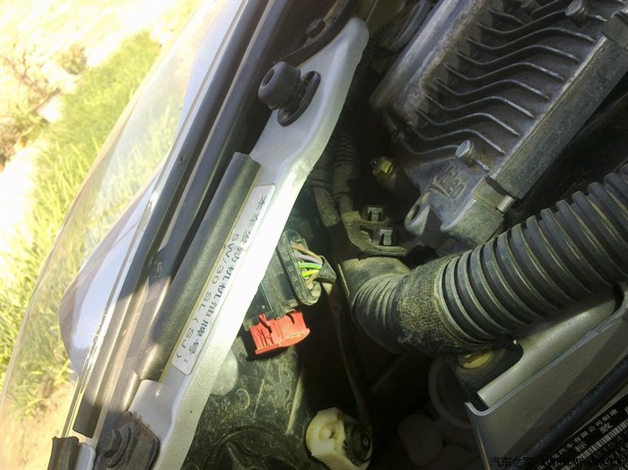 地方狭窄,可清理的都要清理,应该是大灯的线束吧(不确定哈。老鸟鉴定下)