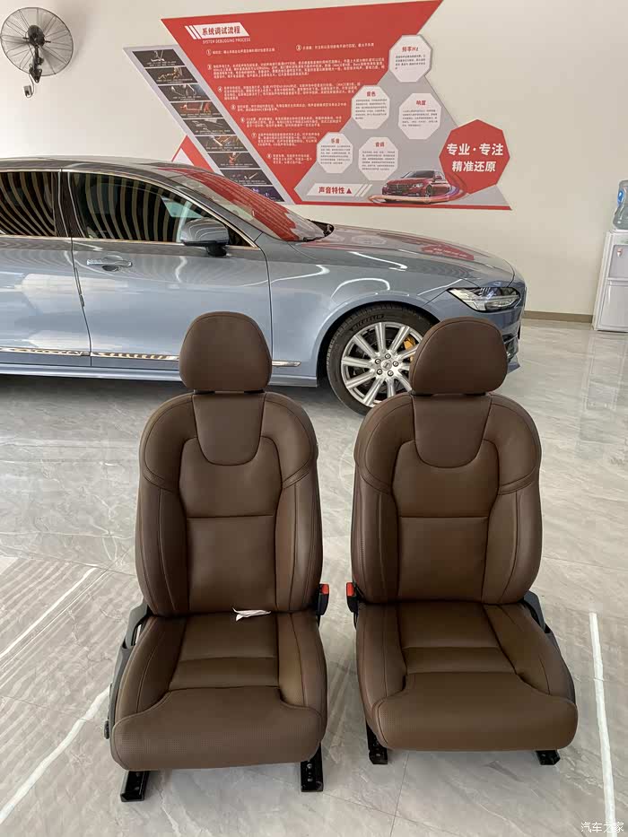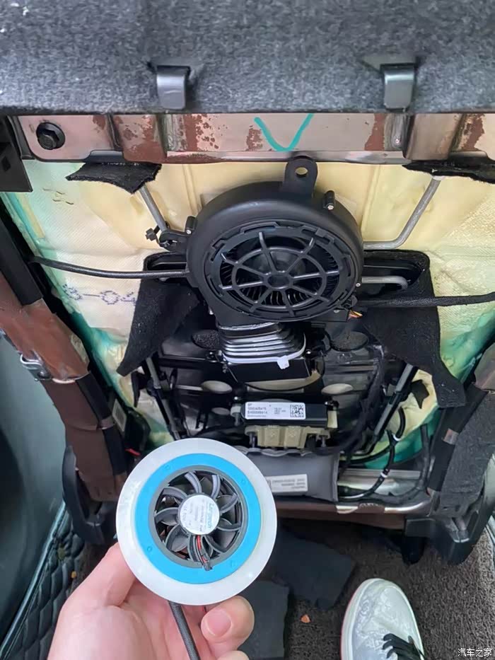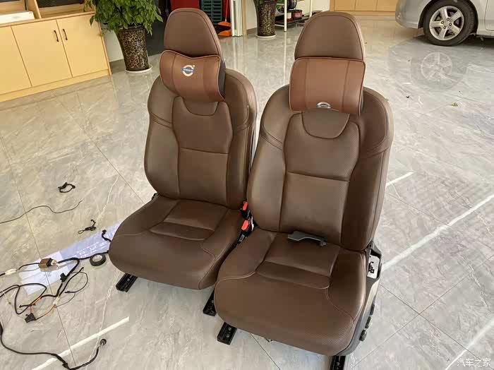 说实话这个大涡轮吹风方式的风真的很大,刚用的时候非常爽。可是到了晚上就郁闷了,背上一直吹风那个位置一直冰凉还伴随着的酸痛,知道完了,应该是吹太厉害了。赶紧拆了退款了。然后接着研究,也亲自去了4S店感受了试驾车的原厂座椅通风也是吸风而且噪音不大效果还可以。然后网上目前沃尔沃有两种改装方式第一就是用原厂的风机改装然后刷机用原车屏幕按钮控制,但是价格贵某马旗舰店最低5500两个座位,后来几经辗转找到批发商成本价就2000块不到,真的是JS啊。第二种装的最多的就是某奥迪的吸风。