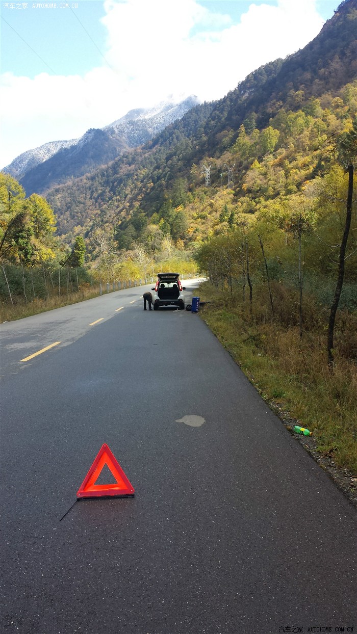 最后一天的行程路况大大超出了我的预期。翻越巴郎山和下山的路一路美景,路况很好。就是因为路况好,在要到卧龙时左后轮被路上石头划破,万幸没有爆胎。海拔2600米换胎真是体力活啊!!接下来就是超级烂路,耿达到映秀!用备用胎开这种路简直是折磨,简直没有越野的兴致,全程精神高度集中,开的我是提心吊胆:(