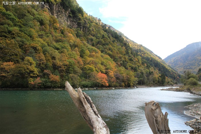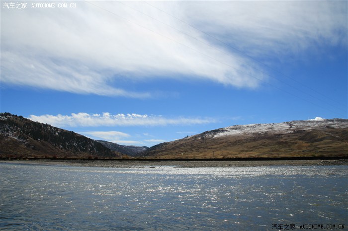 这就是塔公乡交通管制的地方了。当然我们也没闲着干等,看到路基下的河滩和美景,找了个插口开着白骏下河滩了:)