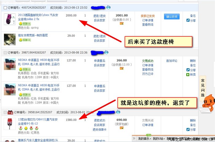 安全座椅是一直想买的,原先还想延迟下,无意中看了楼主的帖子后,觉得反正都是要买的,早买迟买都一样,而且,楼主那么详细的拆解,想想就定下买吧。买的是现货,周五拍的,周六到货,同时也在另外家店里买了根安全带延长带。