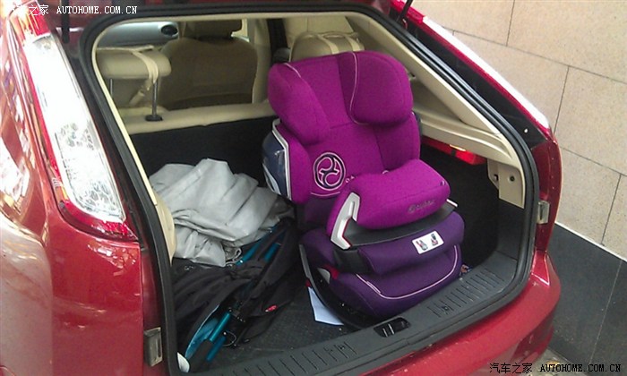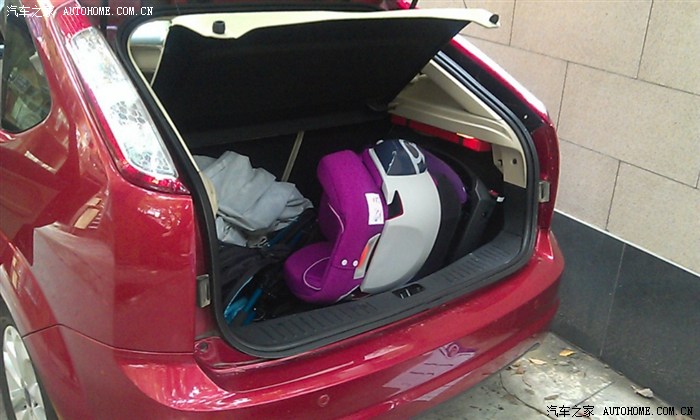 汽车座椅很体积还是很大的,在后备箱横着放,就占了半个车厢的位置了。加上折叠手推车,全都是宝宝的出行装备啊。就是不知道三厢车后备箱能否放得下。当初买车时,如果福克斯有推出旅行版的,我也许就会买旅行版的,一家人出行能更方便。