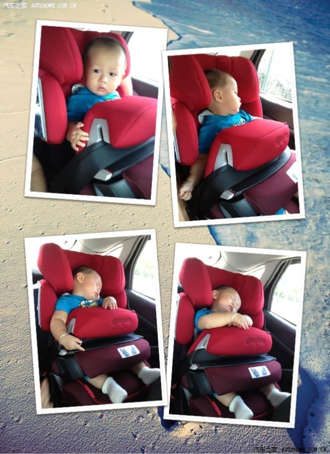 借用老婆拍的图片来给大家展示一下,现在这天气开车前一定要空调先开好再过会儿让孩子坐进去,不然,这座椅看着是挺热的,小家伙坐上去后基本没有什么反抗,开车过程中东看看西看看,然后没一会儿就睡着了。