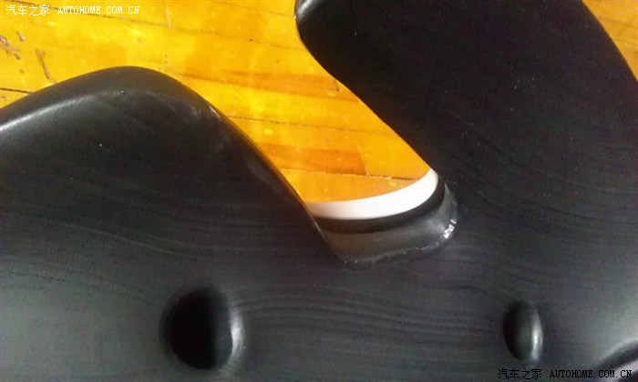 座椅整体是用注塑工艺的,不够精细,但是生产工艺上对边角的毛刺有修整。在扶手的转角处就可以看到削去毛刺的痕迹。