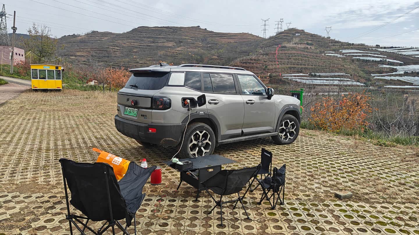 混动车有大电池的加持,有着 6.6 千瓦的外放电, 可随时随地摆桌椅露营。