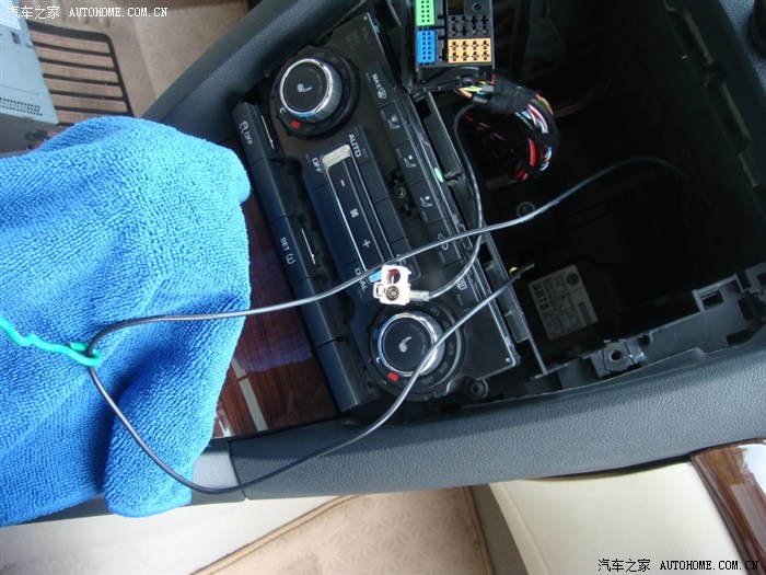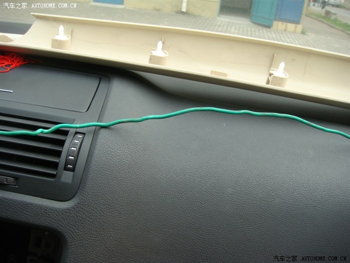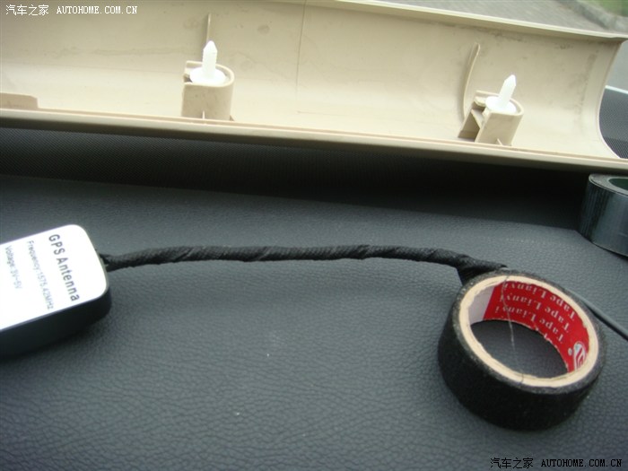 先把天线从A柱穿到中控台图片位置,