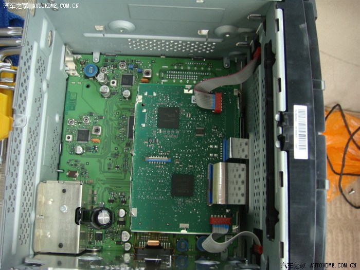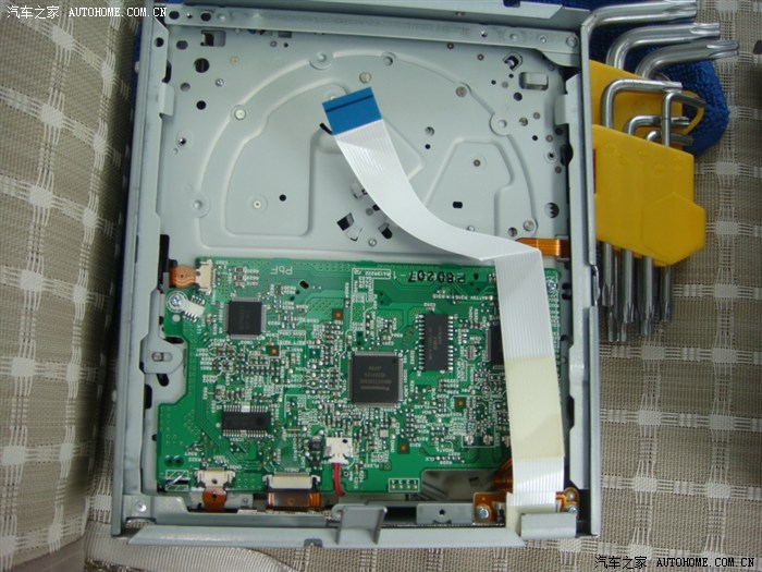 接下来就是拆RCD510了,卸掉左右4颗螺丝,还有我上面提刀的封条下面的一颗。一共5颗螺丝,螺丝头是T8的,我当时最小只有T10的,所以做了一把临时的六碟CD看上去里面很复杂
