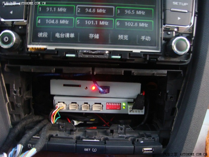 USB功能,可以更新地图文件,可以下载视频文件在RCD510里面播放,就是对视频文件有要求的,要中间找一个视频转换格式的软件,网上很多的,我试过的MP4和AVI都可以顺利播放,分辨率调到400*240左右就行,还可以下载电子书,看图片。功能非常强大。