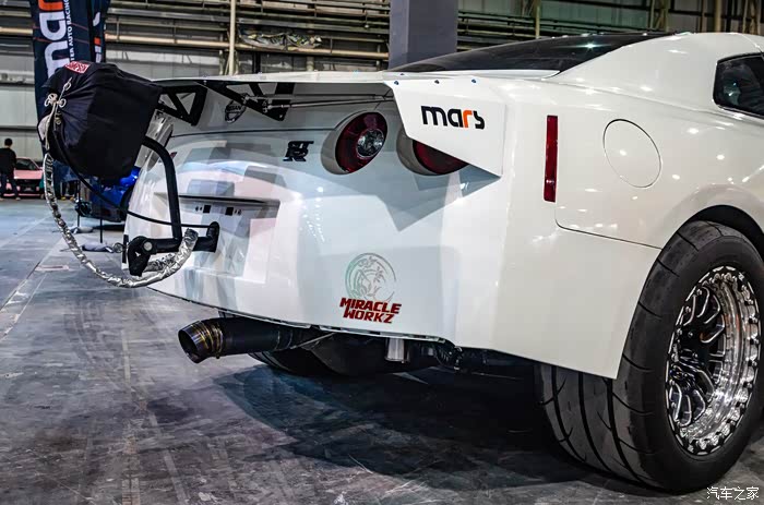 超厚的轮胎、全车大量的轻量化碳纤维改件,最夸张的还是车尾背着的那一个开伞减速包,这些直线加速化的改装在国内都是很少能见到的,不得不说Mars确实是填补了国内这一改装空缺。