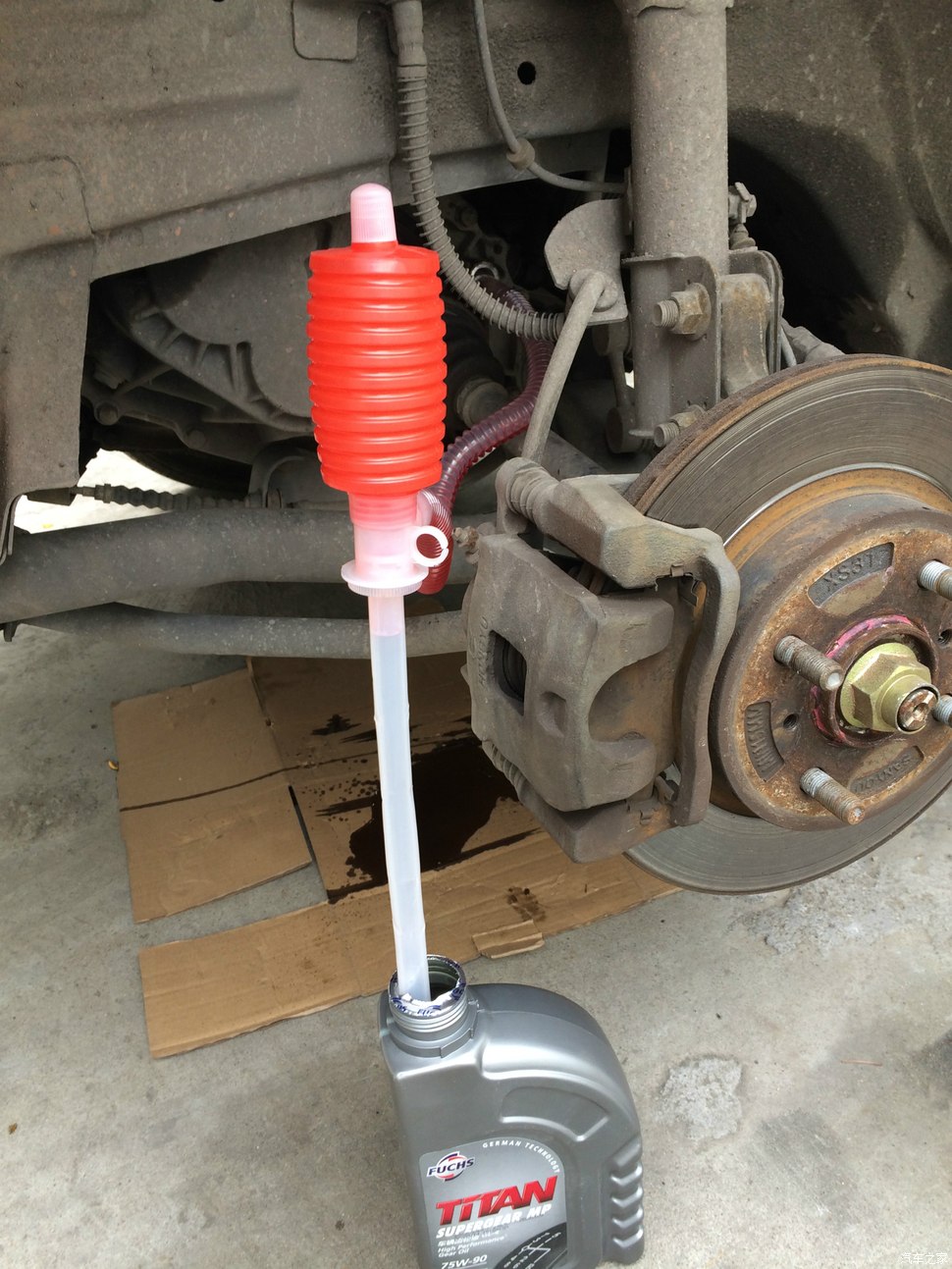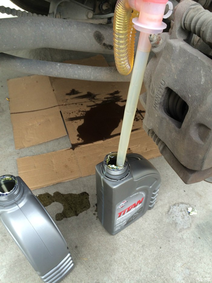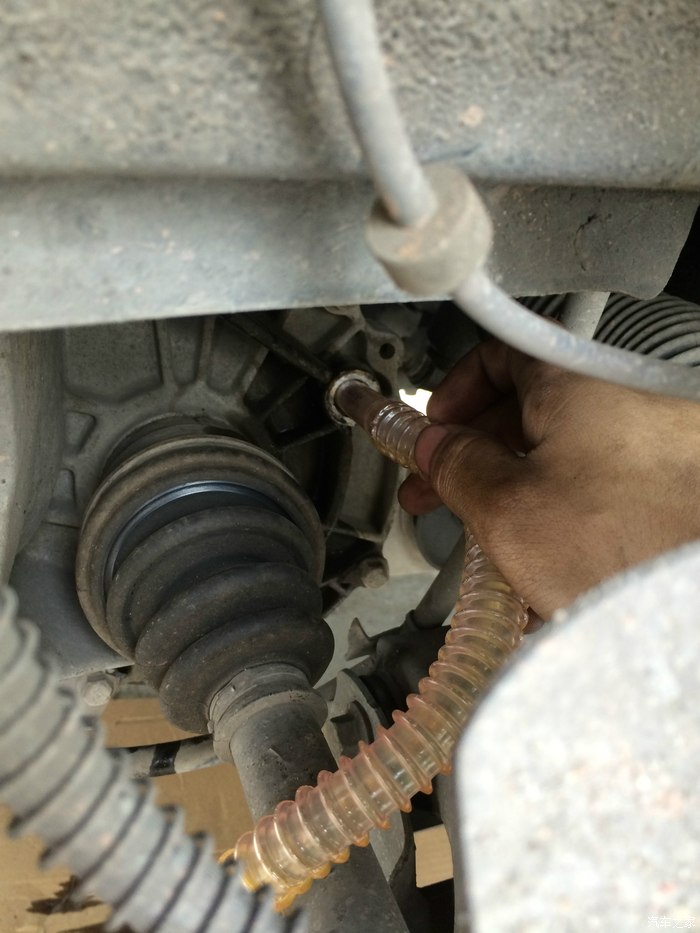 拆了左前轮就好操作点 不拆的话套筒有点难对准角度 我这个是买齿轮油送的自助加注器