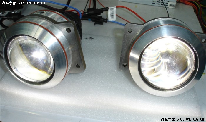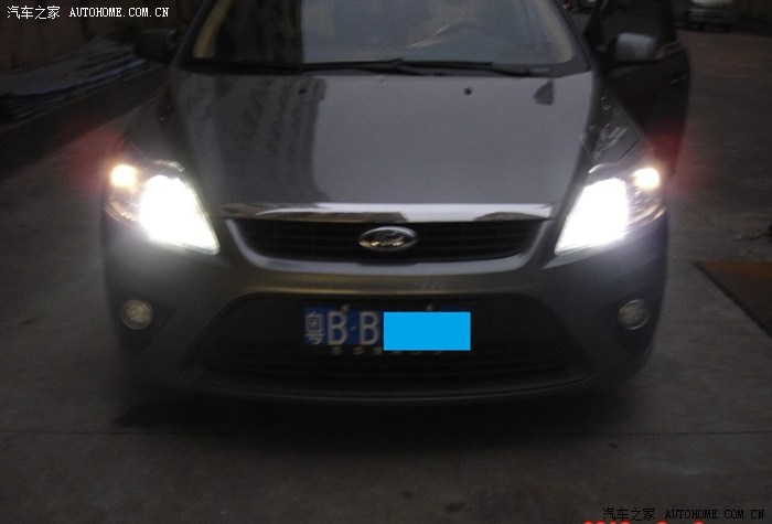 这是从正面看两个装有不同灯泡的大灯,这样看是感觉不出来有啥大的差异的,还是前面射墙的比较明显!