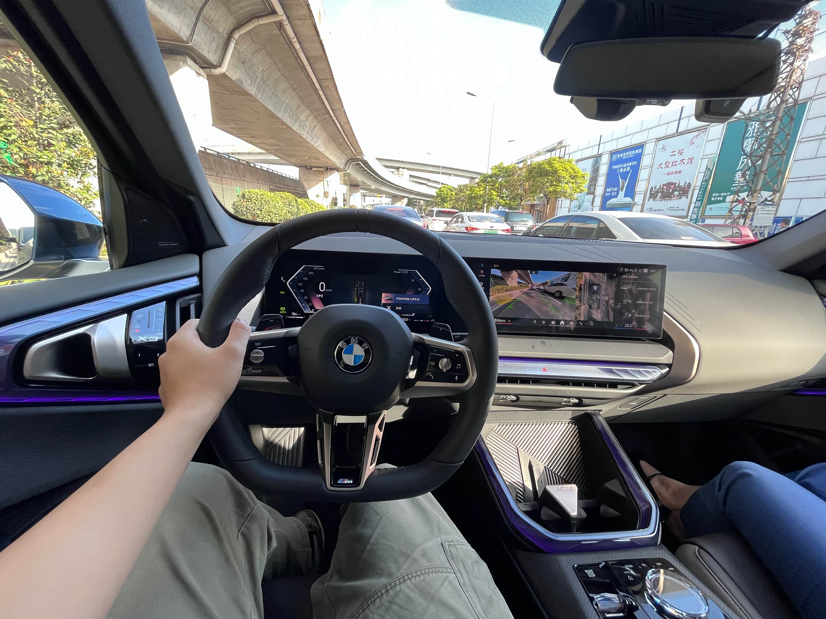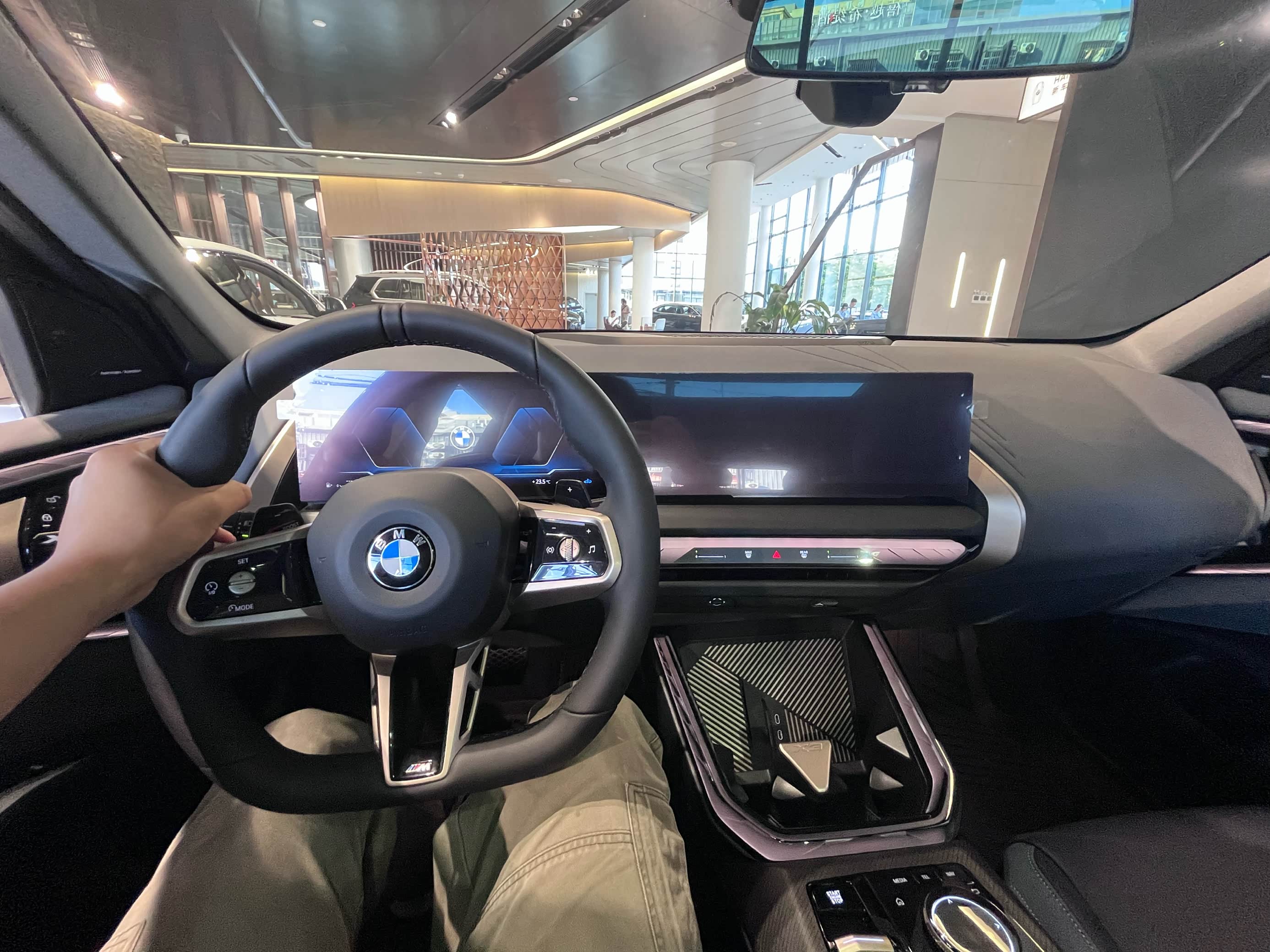 坐进车内,最大的惊喜来自中控台。新款X3终于搭载了宝马最新的一体式悬浮曲面屏(12.3英寸仪表盘+14.9英寸中控触摸屏),这对内饰科技感的提升是颠覆性的。传统的“鸡腿”挡把也被精致的水晶质感小拨杆取代。车机系统升级为iDrive 9,操作流畅,UI设计直观,无线CarPlay和丰富的本土化应用都没缺席。用料方面,Sensatec合成皮包裹搭配精致缝线,触感和豪华氛围营造得很到位。