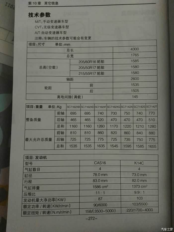 锋驭1.6L CAS16发动机 原厂装车火花塞型号:DENSO JIS B8031,品牌 电装。锋驭1.4T K14C发动机 原厂装车火花塞型号:NGK ILZKR7D8,品牌 NGK。===蓄电池、电瓶型号:12V 45Ah 或 12V 65Ah(怠速启停)我已知用过的品牌有:汤浅、骆驼、日立。===锋驭1.6L、1.4T四轮定位数据车轮定位值:前轮外倾角:-0.17°主销内倾角:12.07°主销后倾角:3.58°前束:±1mm侧滑量:0-3m/km===锋驭1.6L、1.4T制动摩擦副的合理使用范围制动块有效磨损厚度:前8.7mm;后7.5mm制动盘有效磨损厚度:前2mm;后1.5mm==...