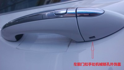 第五步:去掉饰盖后漏出机械锁孔,将机械钥匙插入打开车门。