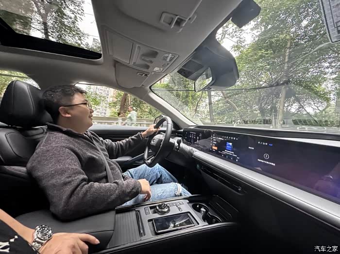 车开起来感觉还不错,动力有求必应,脚感非常好。销售给我科普了一下我才知道,这辆车在刚起步时是由电机驱动,所以很平顺、响应快,就跟电车差不多。到了后面发动机开始介入,和电机一起工作,这时候踩油门提速就更积极了。到了高速巡航的时候,完全由发动机驱动。