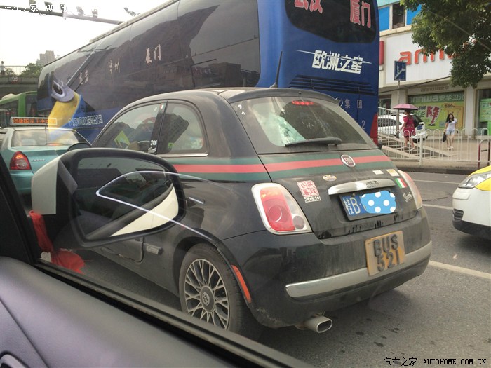 (前两天在路上偶遇的FIAT500GUCCI版,好可爱,好像是两个大男生过来自驾游,后面堆满了行李)