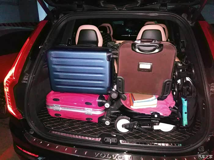 大概可以放这么多东西:2个20寸箱子,1个18寸箱子,2台婴儿车。