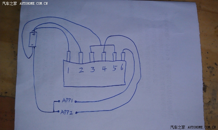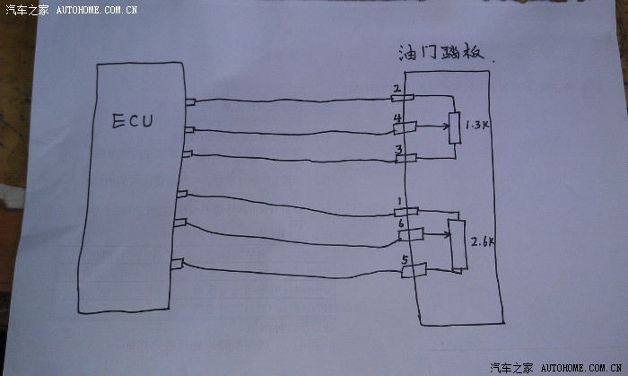 终于露出来了,此电阻值一直在跳动,根据查资料和油门传感器电路分析3号线是电位器下端,此线是接地端,电阻值要为0欧才正常!
