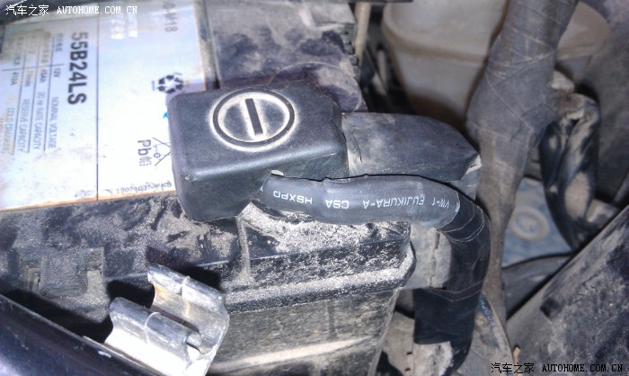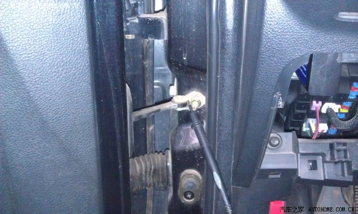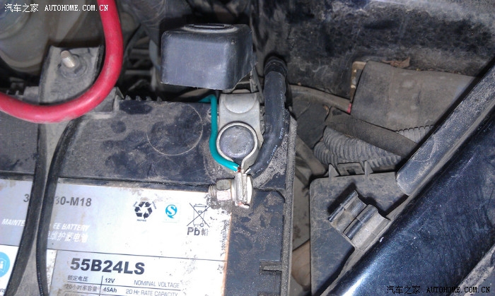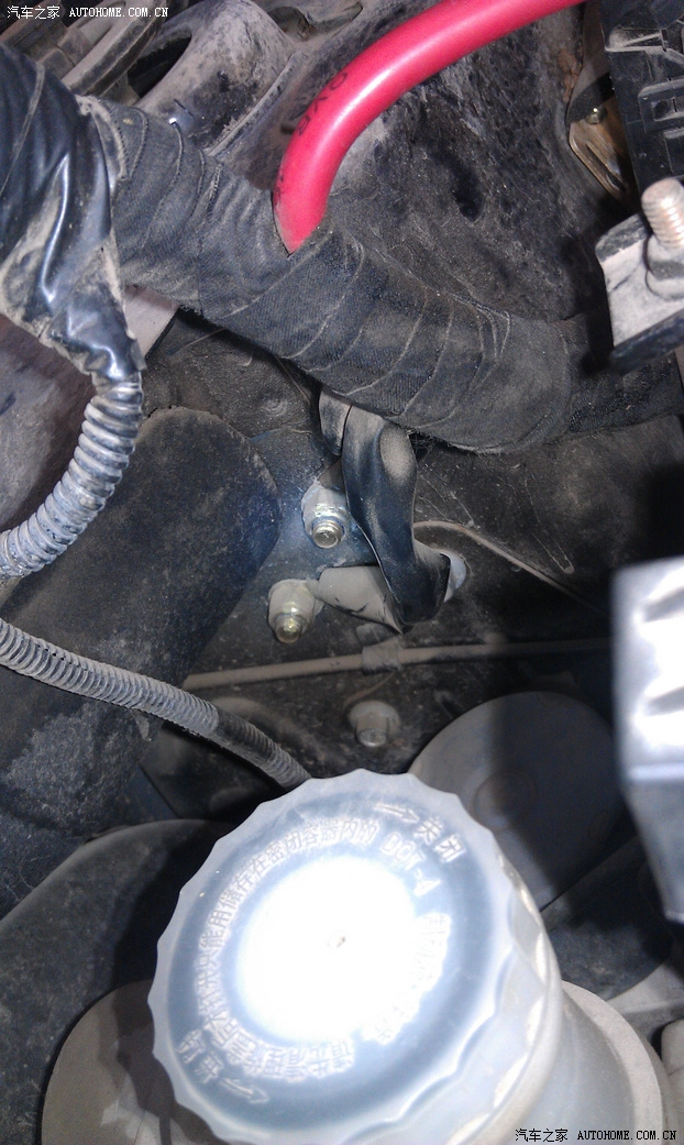 整车线束负极在电瓶后面这个位置通过车体螺丝引入