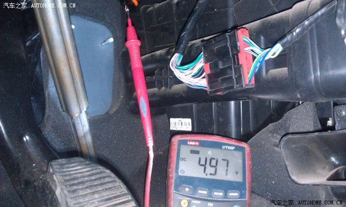 将ECU插头插好检测油门插头电压信号,将汽车钥匙扭到开位(就是自检灯点亮位置)先测量油门2号线头电压