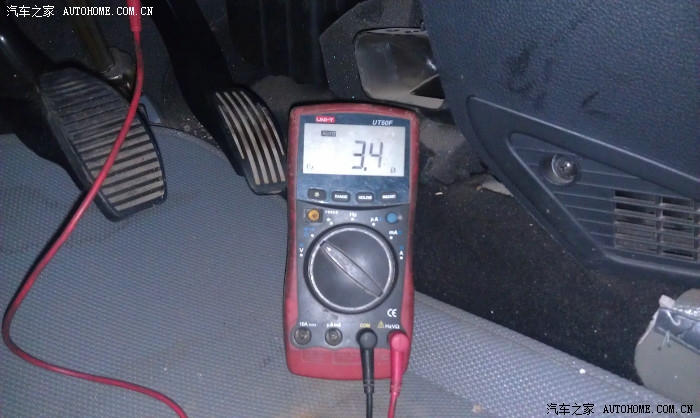 好了,维修结束,再次测量油门踏板3号线对地电阻,随便找个搭铁处。