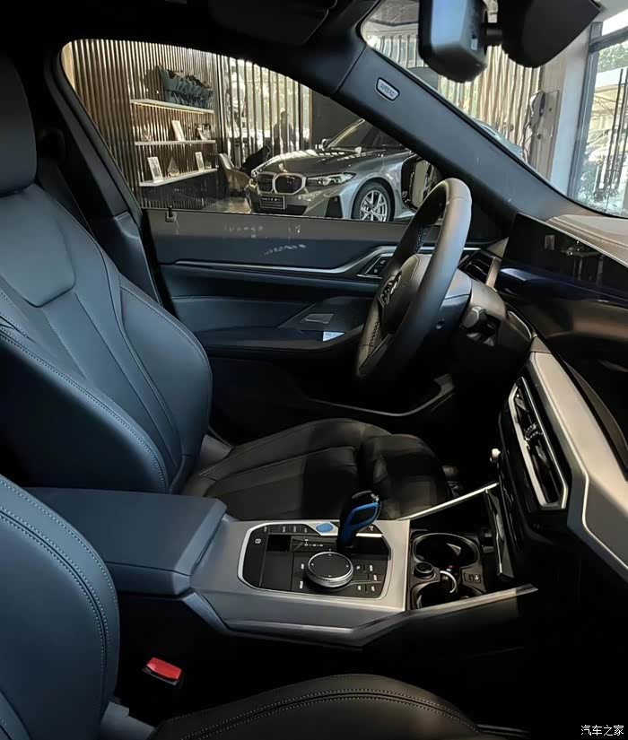 内饰真的符合我的审美,只能用一句话来形容,“哎呦,不错哦”,宝马i4搭载了全新BMW iDrive 8.0人机交互系统,给人最直观的感受就是车载屏幕薄了,并且悬浮在仪表台,而仪表盘和中控屏幕联通,科技感这不就来了嘛。