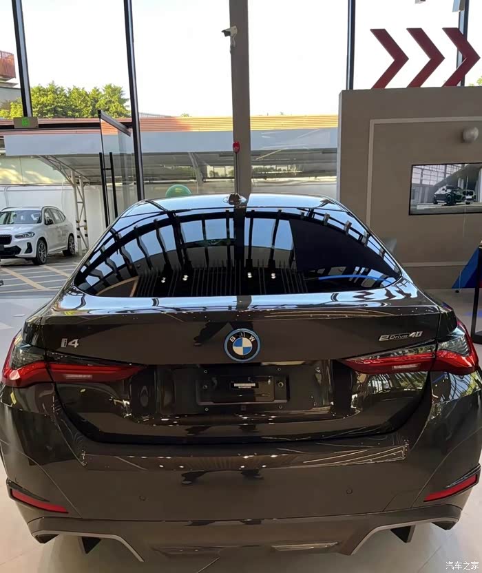 尾部也有两个大的排气管装饰,比起其他电车光秃秃的尾部,i4更好看,更运动呢。