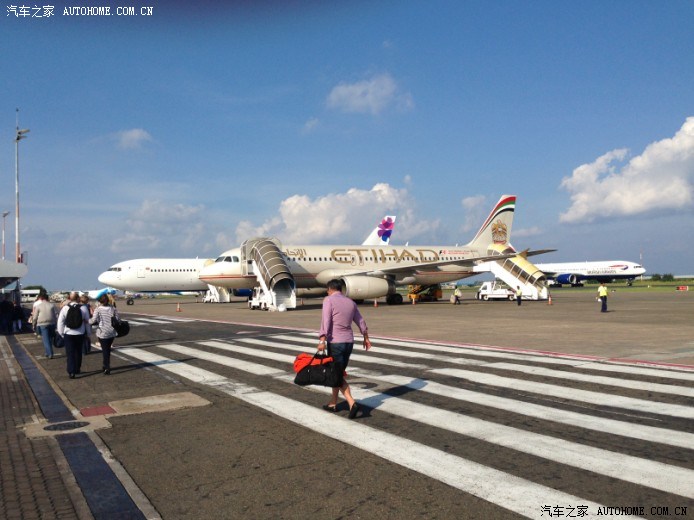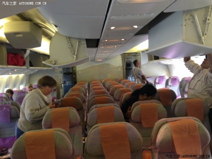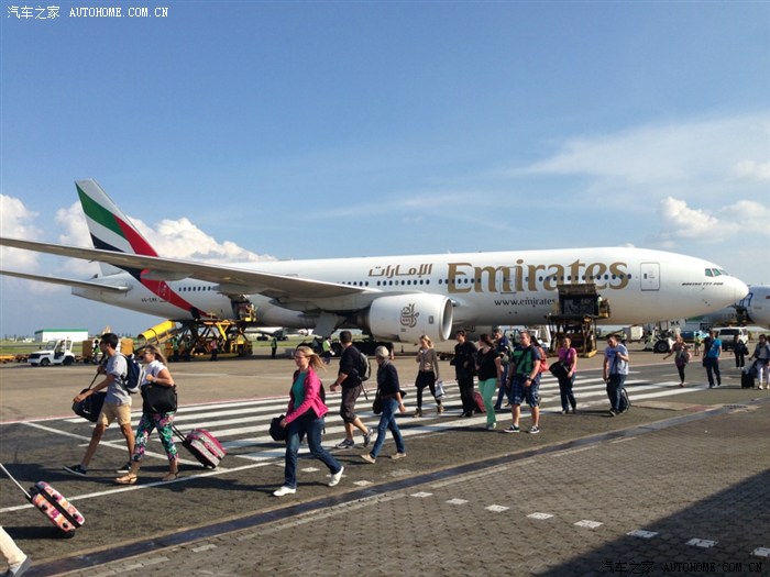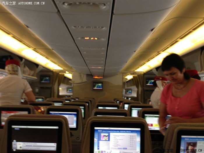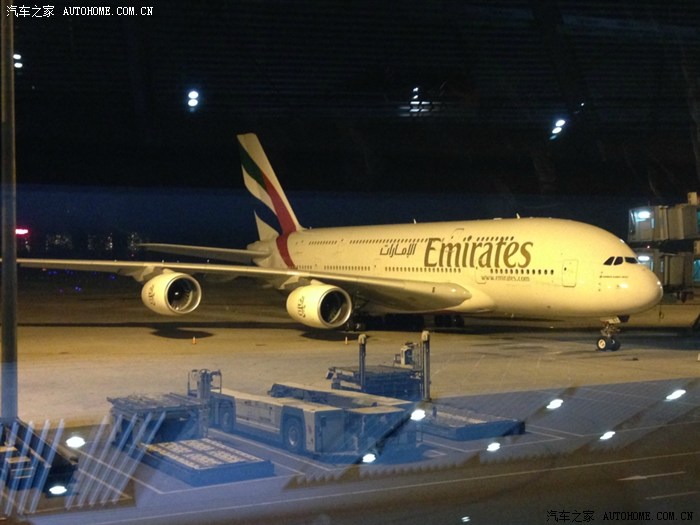 巨无霸出现,阿联酋航空的空客A380,同时三个舱门登机,上面是头等舱和公务舱,价格小贵!
