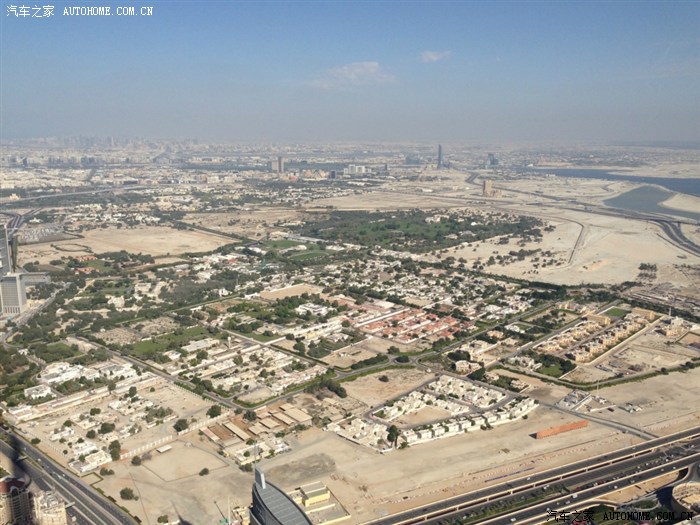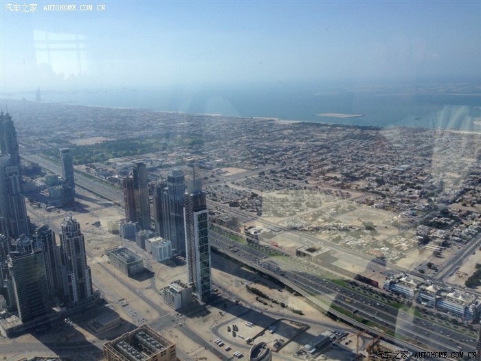 在塔顶观摩整个迪拜,这个城市是一个长条形,已海岸线延长而延伸,一面靠海,一面依靠沙漠。