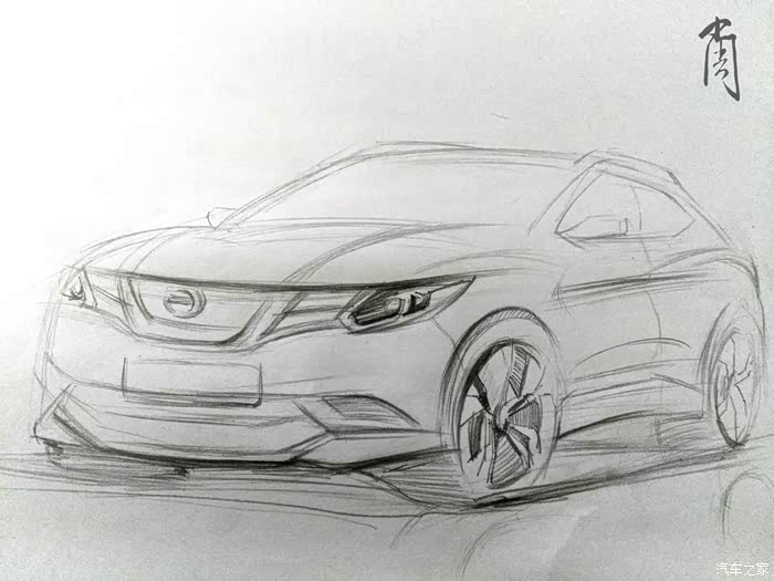 一直以来都是用相机记录逍客的一切,现在是时候表演真正的绝技了,手绘爱车。手绘分为两半部分,一是纯手绘,用铅笔盒马克笔,二是用PS,真正表现效果的。由于长时间没动笔了,画的有点生疏,不喜勿喷,小弟也是尽力画好每一个作品。好了不多说,直接上图吧。