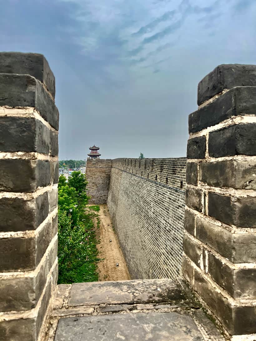 记录着晚清曾经的屈辱过往。沿着台阶走上城墙,一眼望下去。整个四方布局的古城尽收眼底,环绕城墙步行,来到摘星楼,回望远处高大的鸡鸣山就在那静静的矗立着,与古老的建筑与相映成趣。拿起手机,用镜头记录下蓝天、白云、大山、古建、田野、村庄,定格这一刻的娴静时光,是如此的安逸美好。