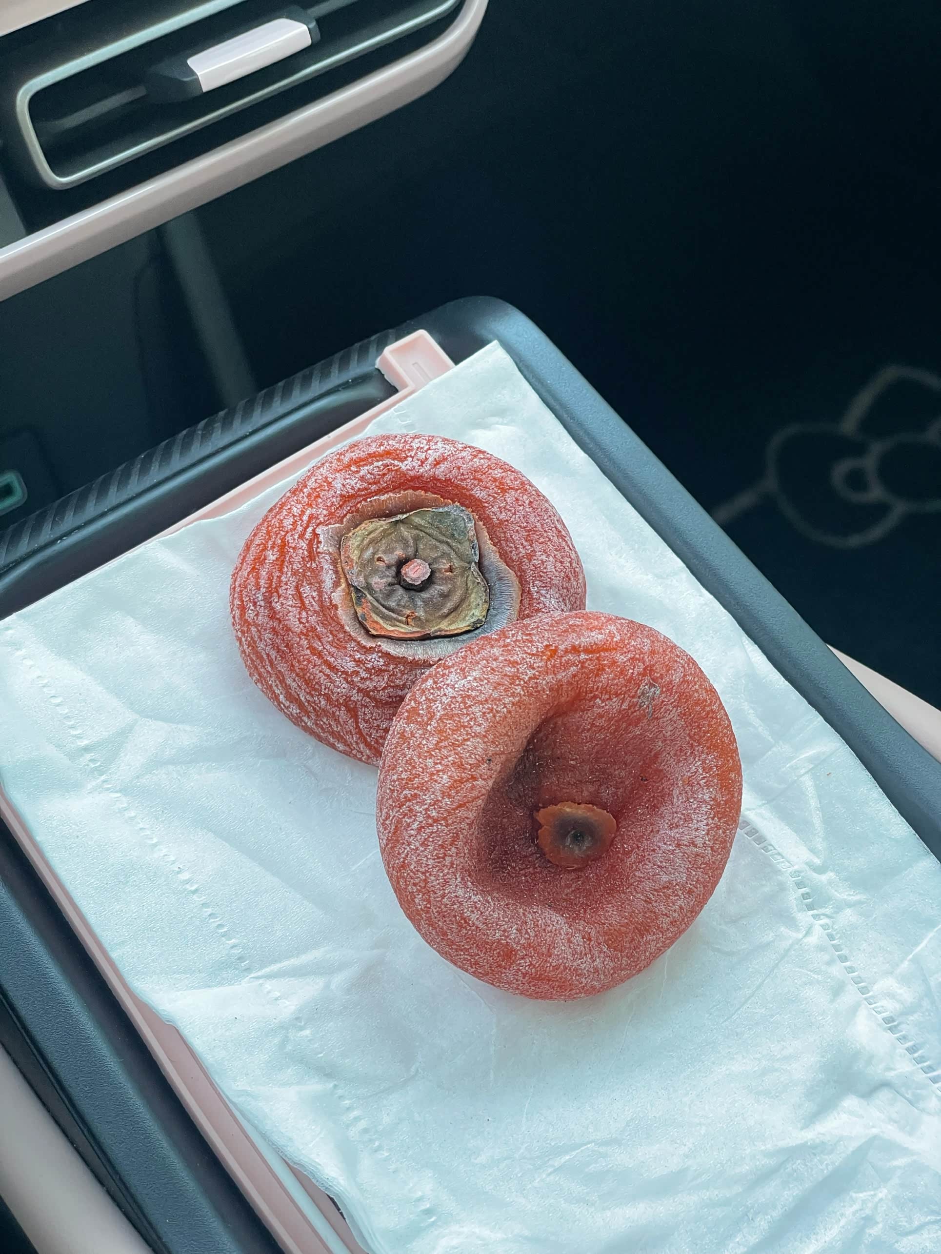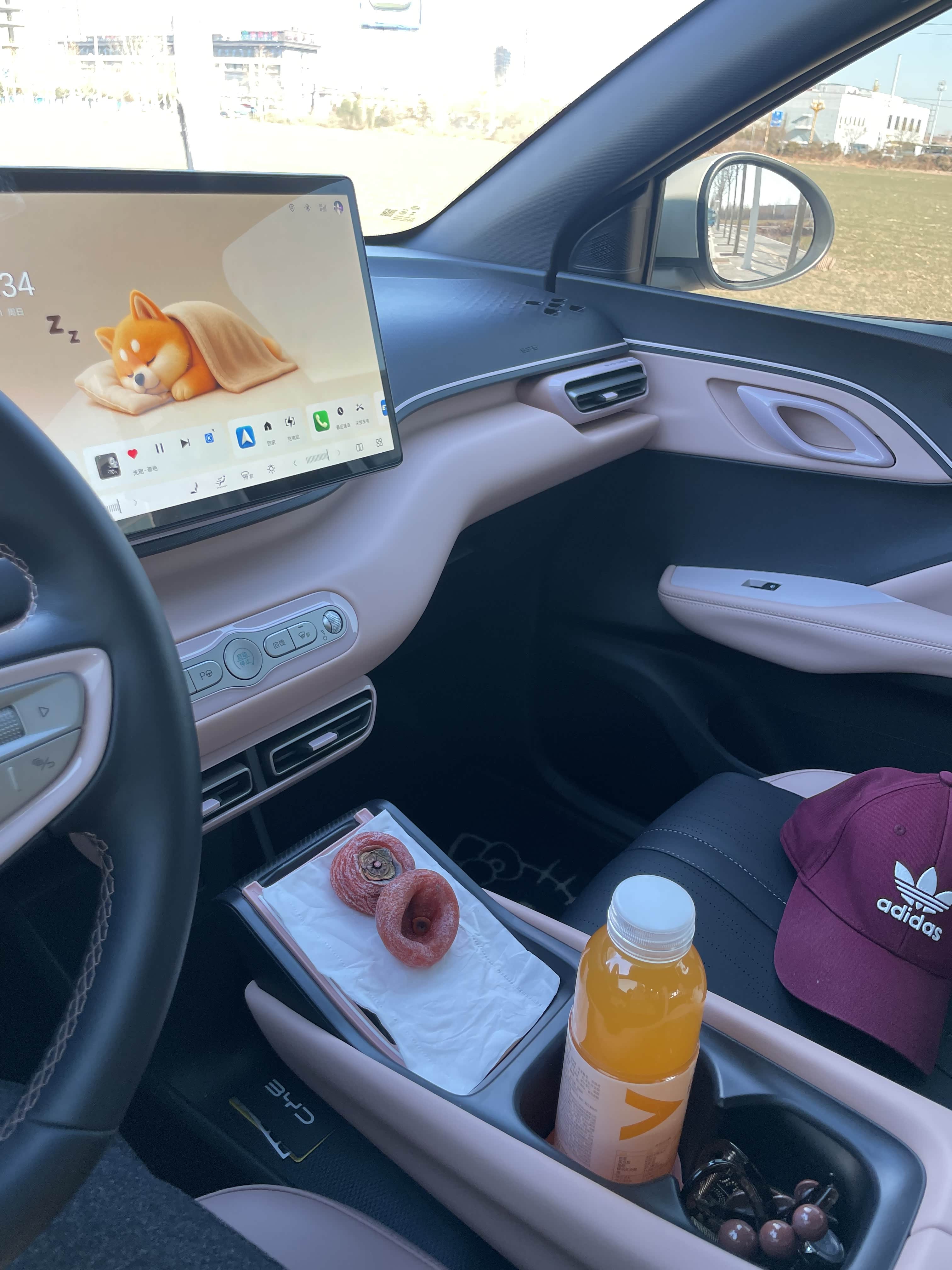 的呼呼的大风,天气预报蓝色大风💨加气温骤降,尽量不出门,但我一点也不care,因为我有我的小海鸥,车门一关,通知一句“你好,小迪,打开暖气空调”,暖呼呼的就出门了,这时候有车的幸福感就具像化了。只要休息日,早饭跟我就不搭边了,早饭午饭一起吃,但在车上也备了点小零嘴,那就是2个糯叽叽的柿饼🫓,外加一瓶消肿神器维c水(开玩笑,喝维c主要是嘴溃疡了,希望好快点😂)。还有就是今天有个重大发现,海鸥的无限充电效率真的高,百分之6的电,放到充电处,吃了个柿饼的功夫,也就最多5分钟左右,百分之18了,平时没留意过,今天发现充的真的不要太快,真的不夸张的说,我用我的油车,无线充大概的充个20多分钟可能才到这个电量。总之呢,有了海鸥感觉出行真的是一件超幸福的事!