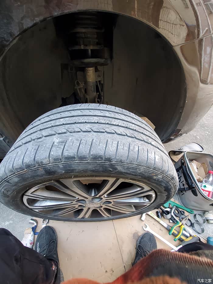最后上好车轮,收拾东西,试车,感觉差异不大,走烂路稍微整一点点,换之前的过减速带咯吱一声还是有