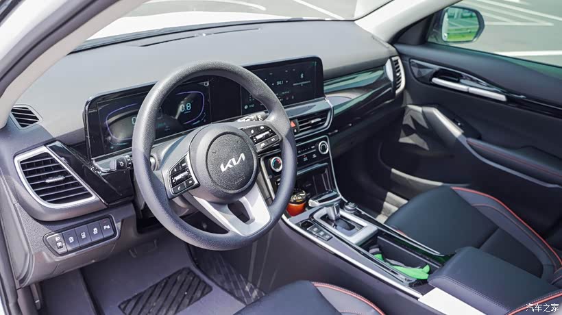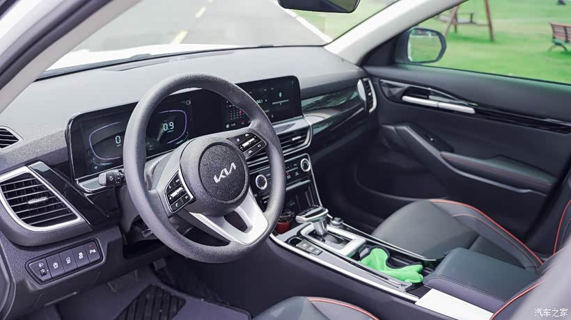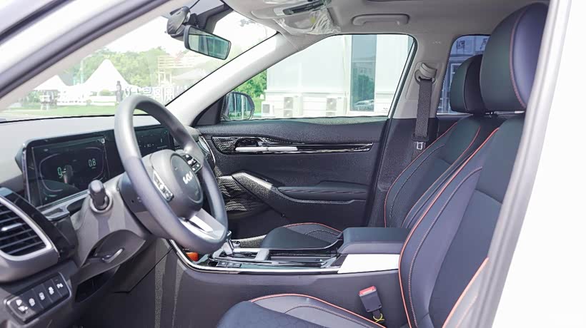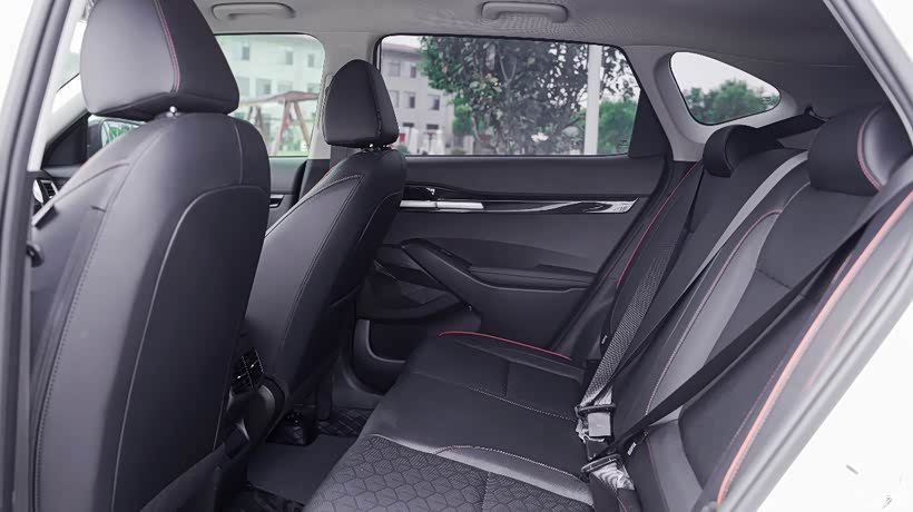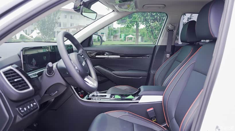 内饰设计简约、大气,用了不少软性材质进行包裹,触感还算舒适,缝线工艺也比较精细。另外,车内的缝线是橙色,给黑色的内饰增添了一丝亮点,坐在车内不显单调。