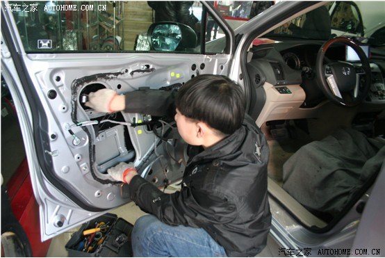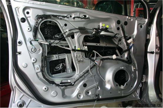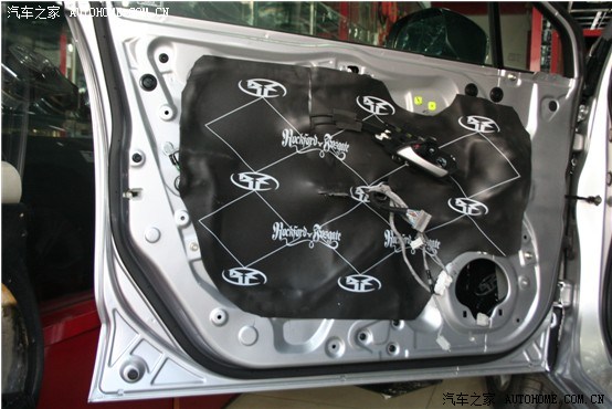 原车门板有一层防水、防尘的塑料膜。隔音的重任是难以担当了,采用美国来福的隔音材料进行四门隔音,为喇叭提供一个共震的箱体,让音质发挥的更加出色: