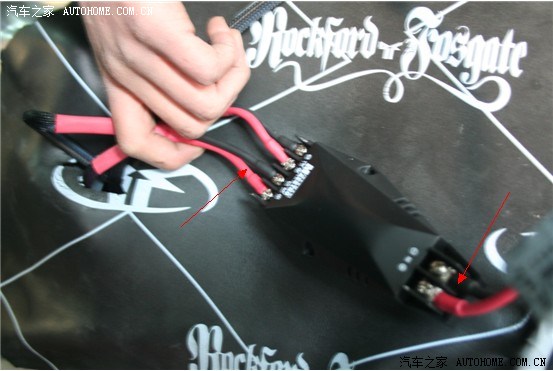 分频器与线材的接头部分用红黑两种颜色标的出正负极,方便以后的调试和维修。热缩管的保护措施也是比不可少的,因为一点点虚接、短路就会影响整台车的音响系统,细节的部分是技师们施工时的重中之重: