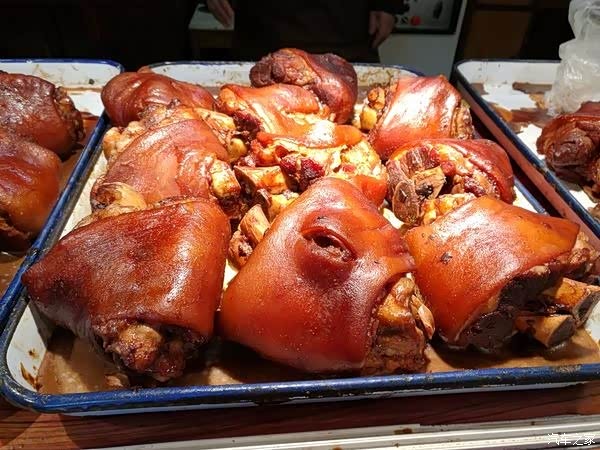 万三蹄的典故来自沈万三和朱元璋,据说谐音“往上提”,象征着升官发财,步步高升。大蹄髈60多元,小蹄髈40多元,售货员会帮你真空包装,如果需要,还可以代寄快递。朋友买回家吃,说是不错。
