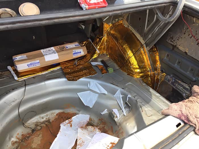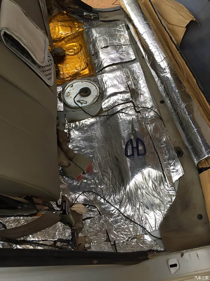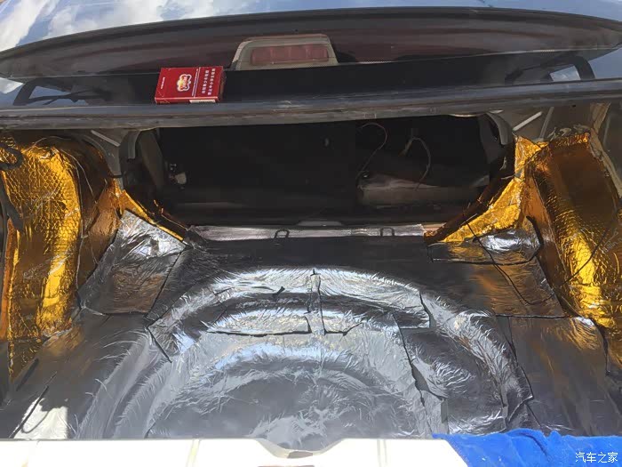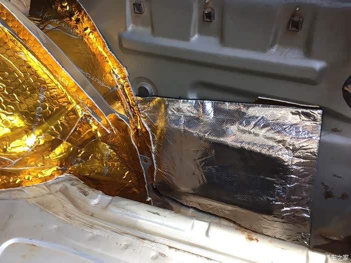 做完了 看效果图 金色是轮毂位置 银色是后尾箱 注明一下 金色为止震版 银色为三合一的隔音材料